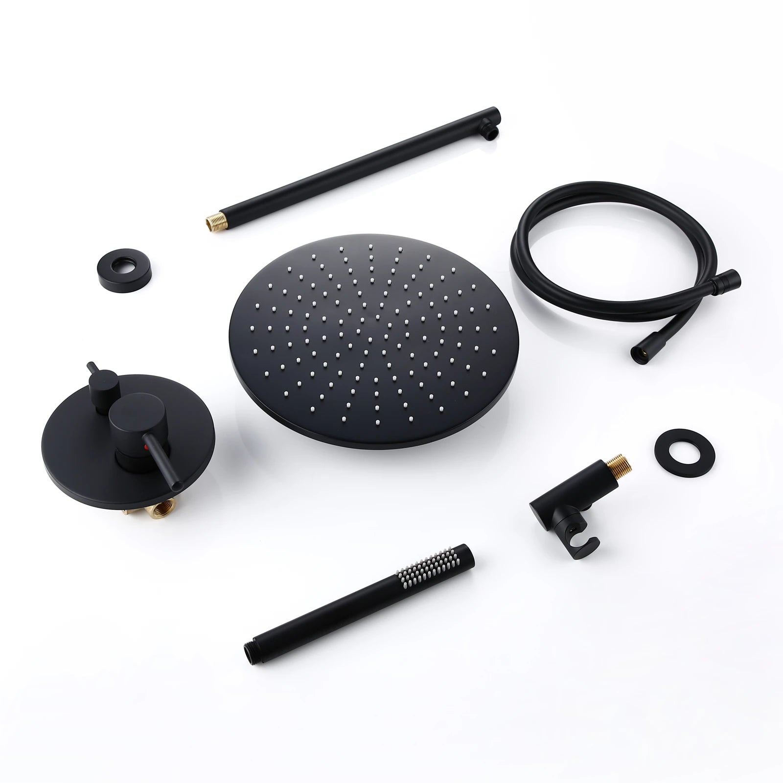 Brass Black Shower Set Bathroom Faucet Ceiling Or Wall Shower Arm Diverter Mixer Handheld Spray Sets With 8" Rian Shower Head