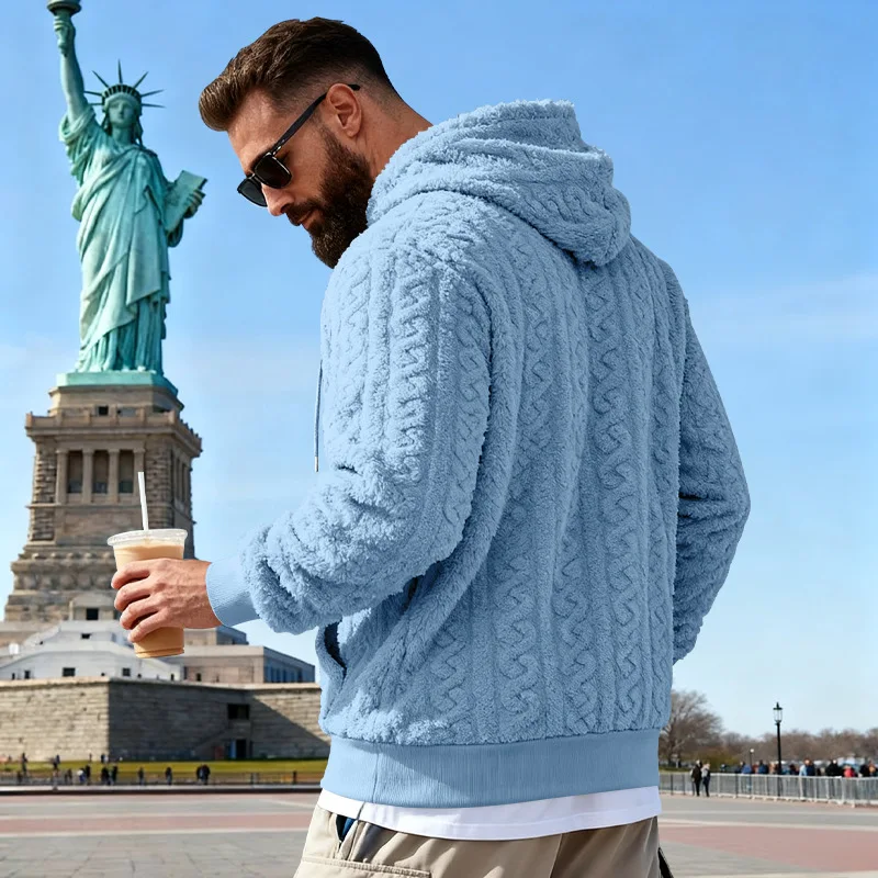Crafted from soft double-sided velvet, this hoodie offers a luxurious feel and warm comfort for winter wear.