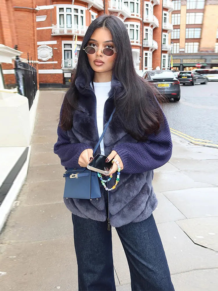 Street Women's Jacket Stand Collar Full Sleeve Faux