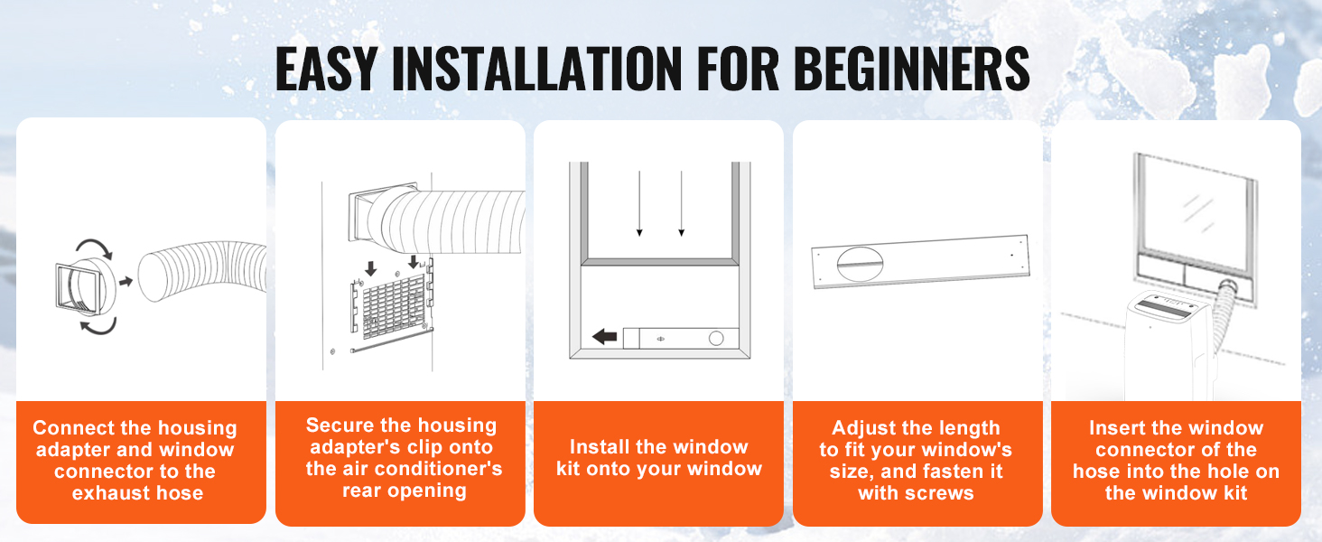 - Simple and Quick Setup: This portable air conditioner is designed for easy installation with all necessary accessories included, such as a drainage hose, exhaust hose, and window kit, making it compatible with both mobile and sliding windows