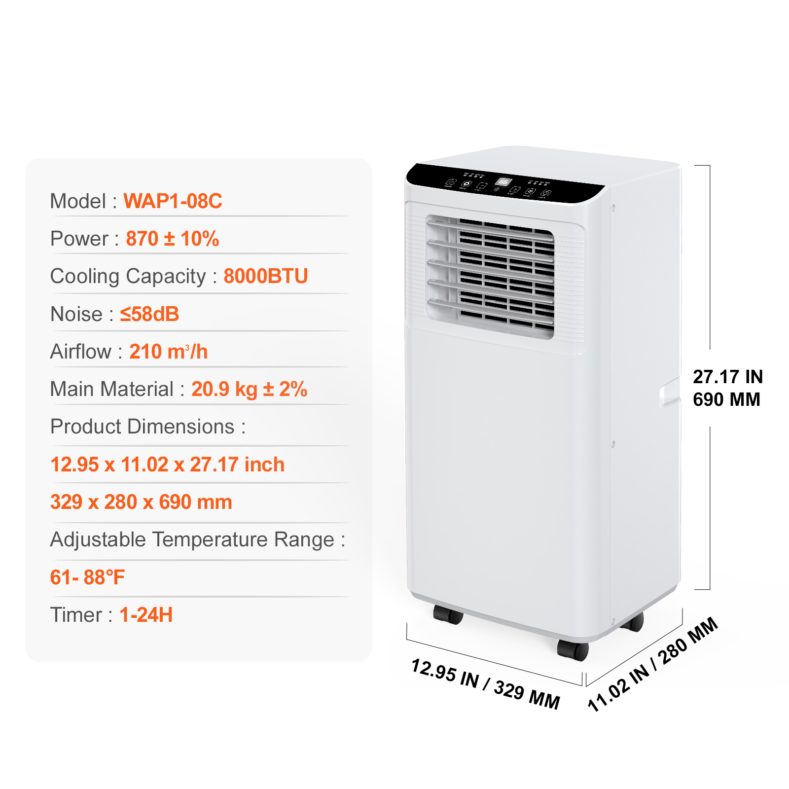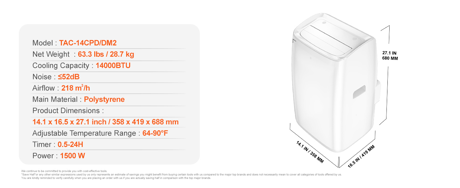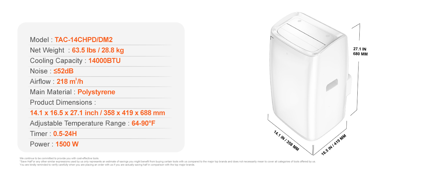 - Convenient and Practical Mobility: Equipped with four wheels for easy transport, this air conditioner can be moved between rooms with ease. It also features a removable filter for simple bi-weekly cleaning, keeping your air fresh and your maintenance low