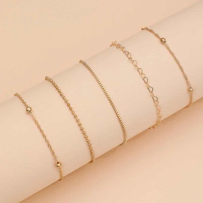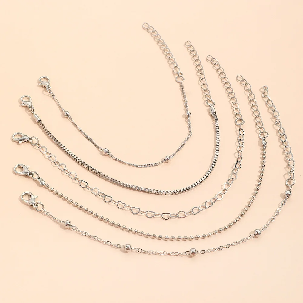 Enhance your everyday look with this 5-piece heart chain bracelet set, designed for women who love elegant and versatile accessories. Each bracelet features a delicate chain with charming heart details, available in both gold and silver tones. This set is perfect for layering or wearing individually to match your style effortlessly.